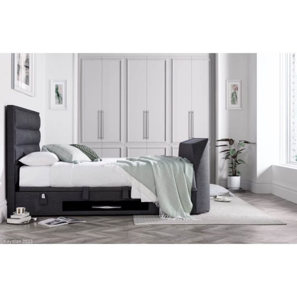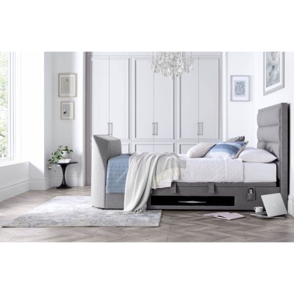 With its remote-control operation and convenient under-bed media storage shelf, the Kirkley Bed frees up wall space and hides all cables to offer the comfort of a hotel stay–at–home.