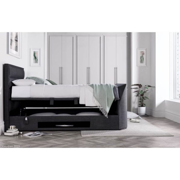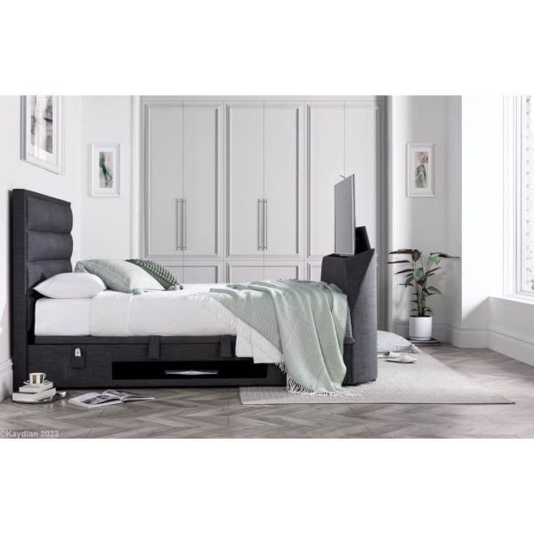 The Kirkley TV bed has an elegant design head end with horizontal effect detailing and a spacious side-access ottoman storage area.