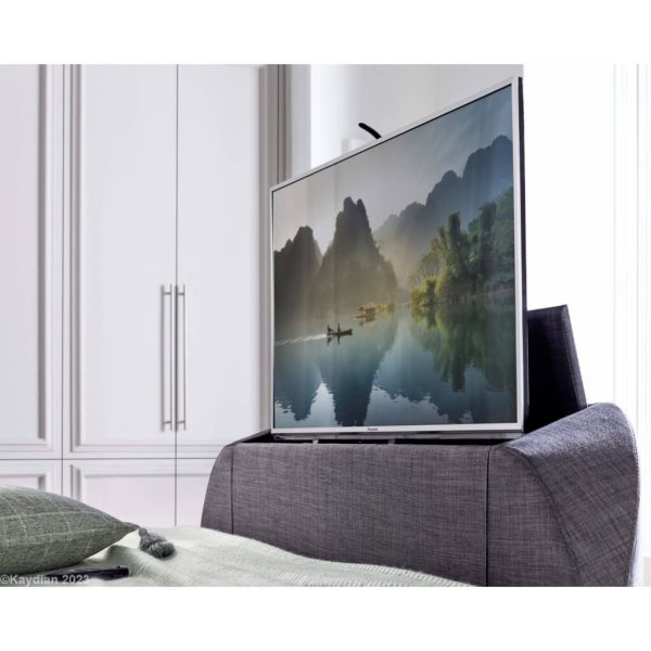 The Kirkley Bed can house TV screens of up to 43” within its ultra-slim foot end (size must be within the maximum dimensions).